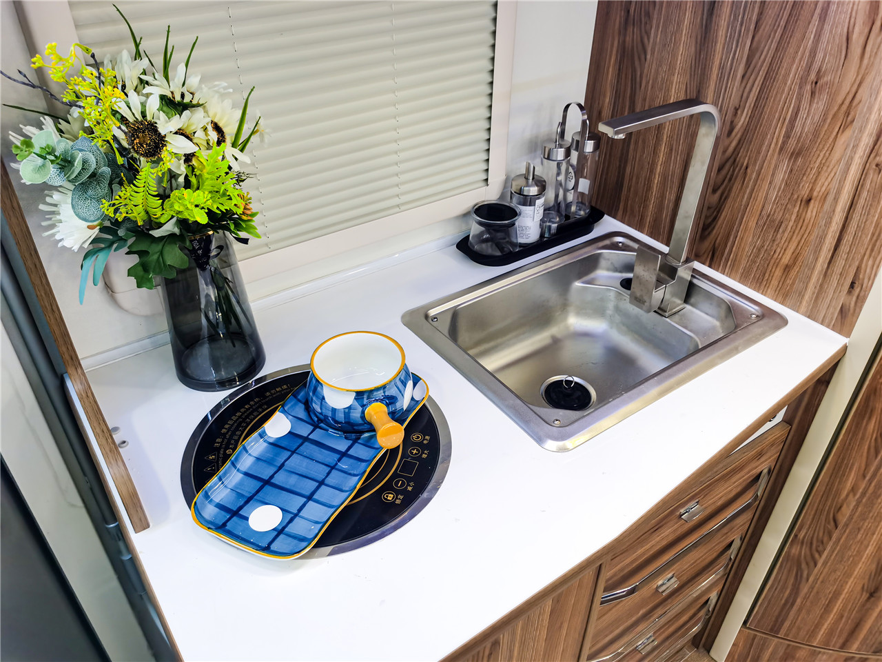 | 戶外清水注水/出水口 | 市電接口+新能源充電接口 | 戶外柴油灶 | ||||||